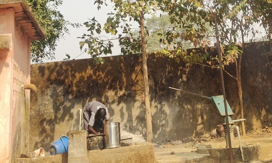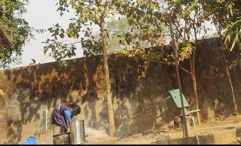 विद्यालय परिसर में बच्चे पानी भरते हुए, बर्तन साफ करते हुए, सब्जी काटते हुए और भारी बर्तनों में पानी लेकर आते हुए नजर आए। यह सब उस समय हो रहा था जब स्कूल के मास्टर और प्रधान पाठक आराम फरमाते दिखाई दिए, और बच्चों की पढ़ाई, सुरक्षा व नियमों का कोई ध्यान नहीं रखा गया।