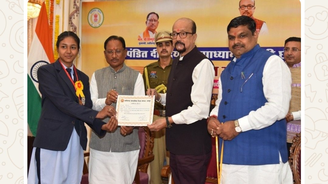 मुख्यमंत्री विष्णुदेव साय ने मेधावी छात्रों को बधाई देते हुए कहा कि आज सम्मानित हो रहे विद्यार्थी देश और प्रदेश के उज्ज्वल भविष्य की नींव हैं। उन्होंने कहा कि छात्रों की इस सफलता में माता-पिता और शिक्षकों का महत्वपूर्ण योगदान है। मुख्यमंत्री ने सभी विद्यार्थियों को बसंत पंचमी की शुभकामनाएं देते हुए कहा कि मां सरस्वती का आशीर्वाद सभी पर सदैव बना रहे।
